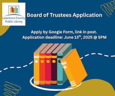 Trustees must be legal residents of Lawrence County and available to attend board meetings on the second Monday of the month at 12:00 p.m. NOON