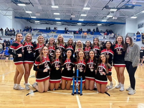 “… Thank you to the crowd, parents, and administrators for always supporting the girls and showing up. Cheer doesn’t get a lot of credit, but we know we’ve accomplished something for the record books! This is something to be proud of and making memories with each other is all that matters.”