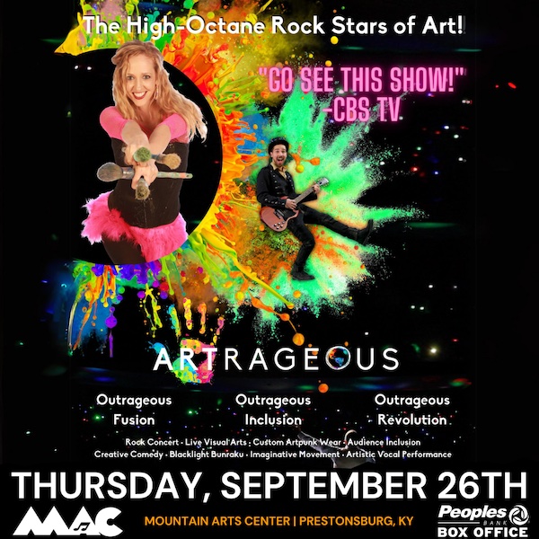 Artrageous! The one-of-a-kind Immersive Family Experience that has CBS raving “Go see this show!” announces our national tour stop in Prestonsburg! Imagine the excitement of a team of exceptional artists painting at electric speed, creating giant works of art, right before your very eyes. Accompanied by live music and powerful vocals, creative choreography ~ A unique visual journey of wild inspiration, creativity and fun!