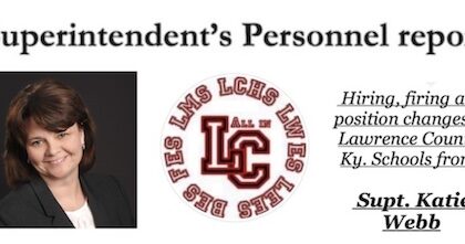 In Lawrence County, Ky Superintendent’s Personnel Action/Update October 20, 2025 Hires…