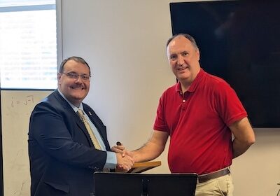 Rotary District 6740 Governor Greg Palmer with Louisa Rotary President Chris Jobe…
