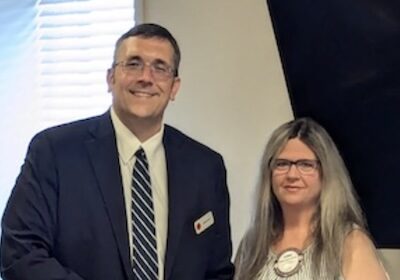 By Susie Chambers James Ayers of First State Bank with Louisa Rotary…