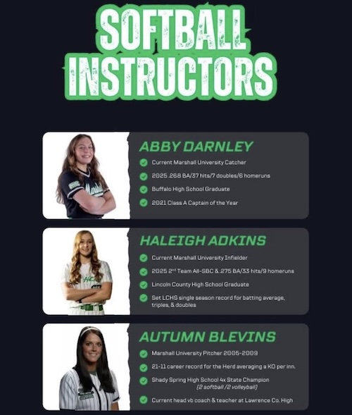 Former Marshall and current LCHS Volleyball head coach Autumn Blevins along with current Marshall standouts Abby Darnley and Haleigh Adkins will be giving softball instructions.