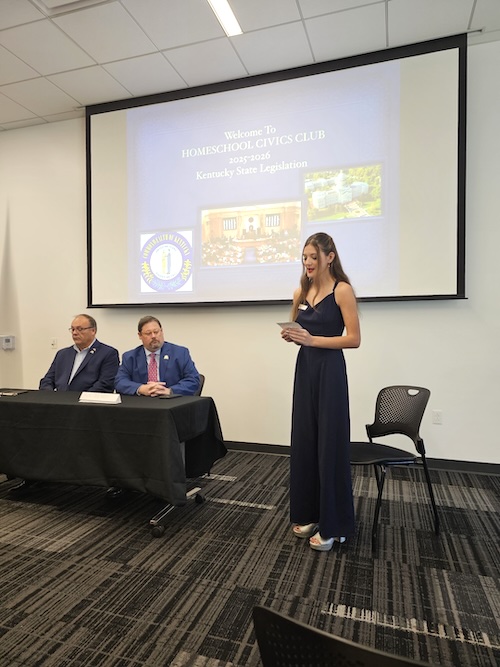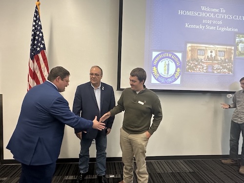 Students from the local homeschool civics club, The Iron Patriots, prepared questions on a variety of topics, including homeschooling obstacles, current issues like Al infrastructure, current threats to homeschool freedoms, and how to engage in public policy as young people. The students and legislators even brainstormed new legislation to strengthen homeschool rights in Kentucky. Students and parents shared personal stories about their homeschooling journey, with many families attributing their move from other states to the area’s low state homeschool regulations.