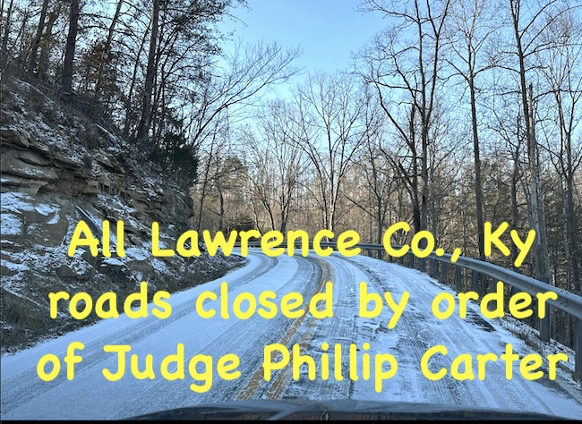 LAWRENCE COUNTY KY., Judge Executive Phillip L. Carter has closed all roads until further notice, according to Director of Emergency Services Travis Hughes. Hughes said most roads are treacherous and Carter is acting upon his advice and others in making the decision to close county roads to all except emergency vehicles.