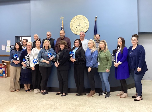 The ladies from FRYSC (Family Resource Youth Services Center) with the LC Fiscal Court and School Supt. Katie Webb on Tuesday April 15, 2025. (Photo and video by Susan Salyer)