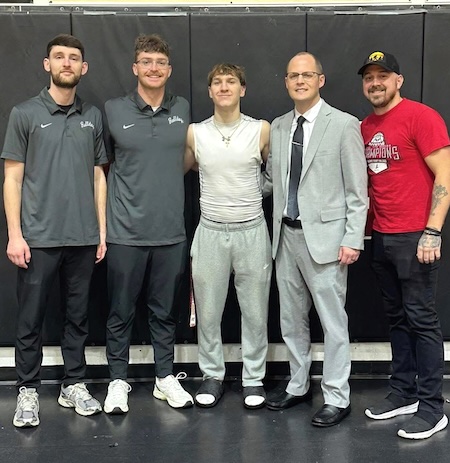 Bulldog Senior Kaiden Harris with his Coaches