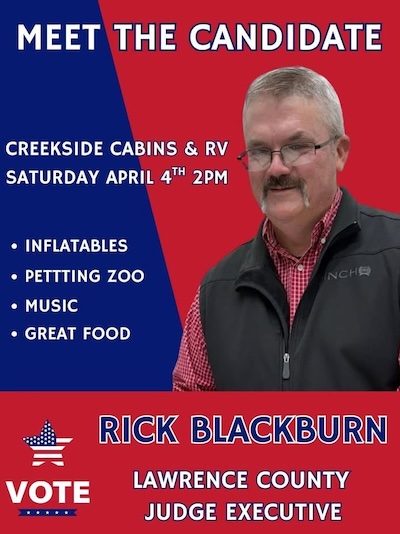 - Rick Blackburn is a key figure in the BOE’s staff as Transportation Director and is a leader of the county fair board as well as a two term member of the fiscal court. He has apparently tired of the direction the court and wants to take the reins. He’s a young, energetic candidate and plenty of Carter experience in hid pocket. Question is why he has become soured on the current court?