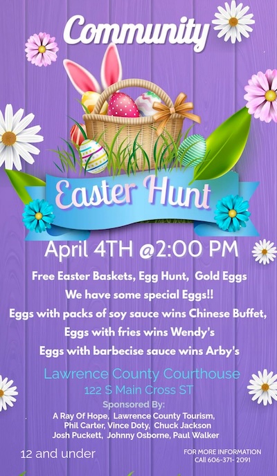 Online signs including the Easter Egg Hunts have cropped up in the last weeks. The first one is sponsored by Carter allies that is shown on the FB sign below.