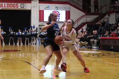 Emalynn Kitts muscles her way toward the basket against Floyd Central.