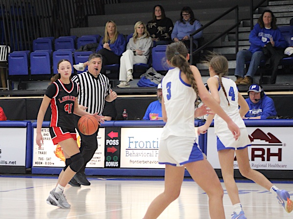 7th Grader Gracie Woods had 6 points in a victory over Paintsville. LC Head Coach Melinda Fletcher gives directions.