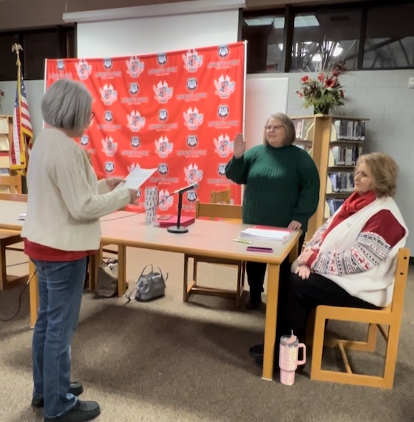 Ms. Pamela Howell, Notary, presided over the ceremony. BOE member Barb Robinson, sitting.