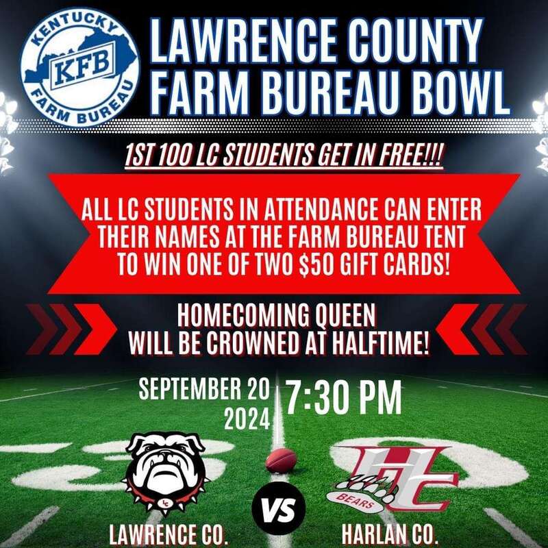 Louisa, Ky Coming off a much needed bye week the Lawrence Co. Bulldogs will host the Harlan Co. Black Bears Friday for Homecoming in the Lawrence County Farm Bureau Bowl.