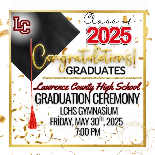 Lawrence County High School warmly invites parents, families, and the community to the 2025 LCHS Graduation Ceremony.