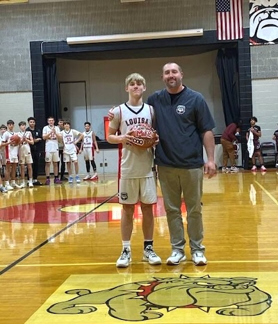 Mikey Artrip with Head Coach Kenny Muncy after surpassing the 1,000 point mark.
