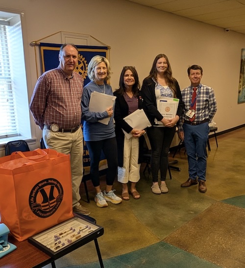 Louisa Rotary Club welcomed three new members on April 9th. L to R – President Chris Jobe with new members Marsha Moody, Lisa Meade and Emily Jarrell. Rotarian Pat Hart presided over the induction ceremony and handed out their welcome packets.