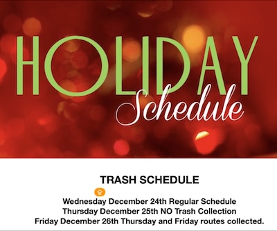 Lifestyles Louisa Trash Schedule for Christmas week Last updated: December 22, 2025 12:05 pm Harold Slone Share SHARE Share This Article Facebook Twitter Copy Link Print Share Previous Article Commissioner’s Student Advisory Council Discusses How To Improve Postsecondary Transition Efforts Next Article Public Comment Hearing Held On Kentucky Power Rate Increase Request; Questions About Demise Of Big Sandy Plant Leave a Comment Leave a Reply Cancel replyYour email address will not be published. Required fields are marked *Comment * Name * Email * Website Save my name, email, and website in this browser for the next time I comment. Stay ConnectedFacebookLikeTwitterFollowInstagramFollowYoutubeSubscribeLinkedInFollowLatest News “Judy” Edna Opal (Hall) Ratclliffe, 95, of Glenhayes, WV Obituaries Online in Louisa Ft. Gay-Prichard W. Va Public Comment Hearing Held On Kentucky Power Rate Increase Request; Questions About Demise Of Big Sandy Plant Editorials/Letters Commissioner’s Student Advisory Council Discusses How To Improve Postsecondary Transition Efforts Education Vernie Salmons, 86, of Fort Gay, WV Obituaries Online in Louisa Ft. Gay-Prichard W. Va