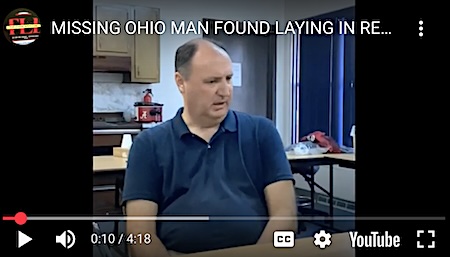 A 73 year old Hamilton, Ohio man, missing for three days was found laying in a remote Lawrence County, Ky. stream last night, Fallsburg Vol. Fire Dept. spokesperson Chris Jobe said during a news conference in Sheriff Chuck Jackson’s office today (Tuesday).