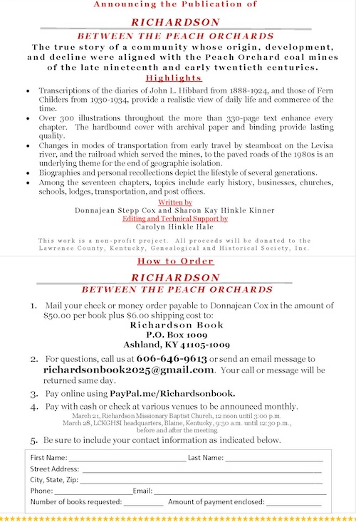 Stay Connected with Local News TodayTop Recollections News - The Levisa Lazer NEW BOOK ABOUT RICHARDSON, KY IS OUT TODAY Last updated: March 26, 2026 10:47 am Special For The Lazer Share SHARE Share This Article Facebook Twitter Copy Link Print Share Previous Article Facing Hunger Foodbank Hosts Mobile Distribution in Martin County Next Article BULLDOGS START 58TH DISTRICT ACTION 4-0 AFTER SWEEPING PRESTONSBURG Leave a Comment Leave a Reply Cancel replyYour email address will not be published. Required fields are marked *Comment * Name * Email * Website Save my name, email, and website in this browser for the next time I comment. Stay ConnectedFacebookLike0Follow0FollowYoutubeSubscribeLinkedInFollowLatest News House Passes Sharp’s Legislation Safeguarding Kentucky’s Economic And Security Interests Business/Politics BULLDOGS START 58TH DISTRICT ACTION 4-0 AFTER SWEEPING PRESTONSBURG Stay Ahead with Lazer Sports News Facing Hunger Foodbank Hosts Mobile Distribution in Martin County Lifestyles Martin County Star named MaxPreps Kentucky High School Basketball ‘PLAYER OF THE YEAR’ Stay Ahead with Lazer Sports News