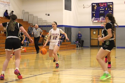 Olivia Kelly drives toward the basket vs Tug Valley.