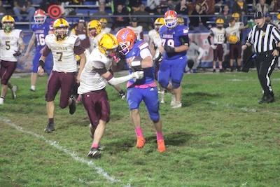 Dakota Blackburn running hard to break a tackle versus Sherman.