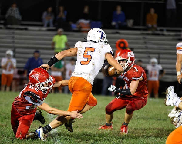 Bray Mollette gets tripped up after long gain against Calhoun Co.