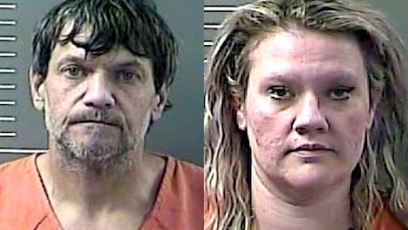 Deputy Wall wrote in his report that the occupants, who were identified in the arrest citation as Larry Joe Horn Jr., 58, and Brandi Nicole Moore, 35, both of Inez, KY., (Larry Horn Jr., also had ID listing his address of Mansfield, Ohio), both acted and appeared nervous and they were moving & shuffling around inside the truck after he pulled them over.