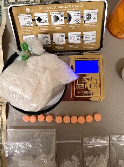 During a search of the vehicle, officers found three individual baggies containing a crystal-like substance weighing approximately 7 grams, along with 10 loose orange pills inside a purse on the passenger side. They also found a bottle of Gabapentin, filled on Monday February 9, which should have contained 90 pills but instead contained only 49, according to the arrest report.