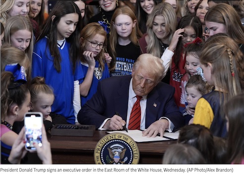 President Donald Trump signed an executive order on Wednesday intended to ban transgender athletes from participating in girls’ and women’s sports.